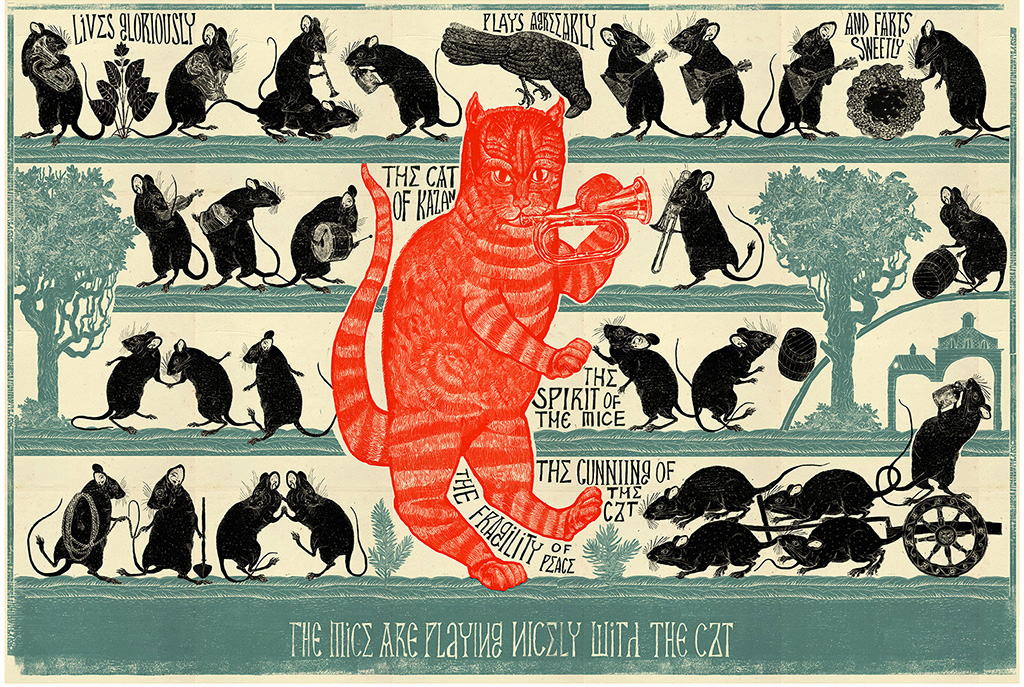 It’s been a while since Jim Kay illustrated Patrick Ness’s book, A Monster Calls, which has now sold in countless countries. So he was delighted to be asked to illustrate the endpapers of Patrick’s latest book in the Chaos Walking series. The joy of working on endpapers is that you escape the scrutiny of the cover meeting comments, and you can see that Jim enjoyed working on this one.